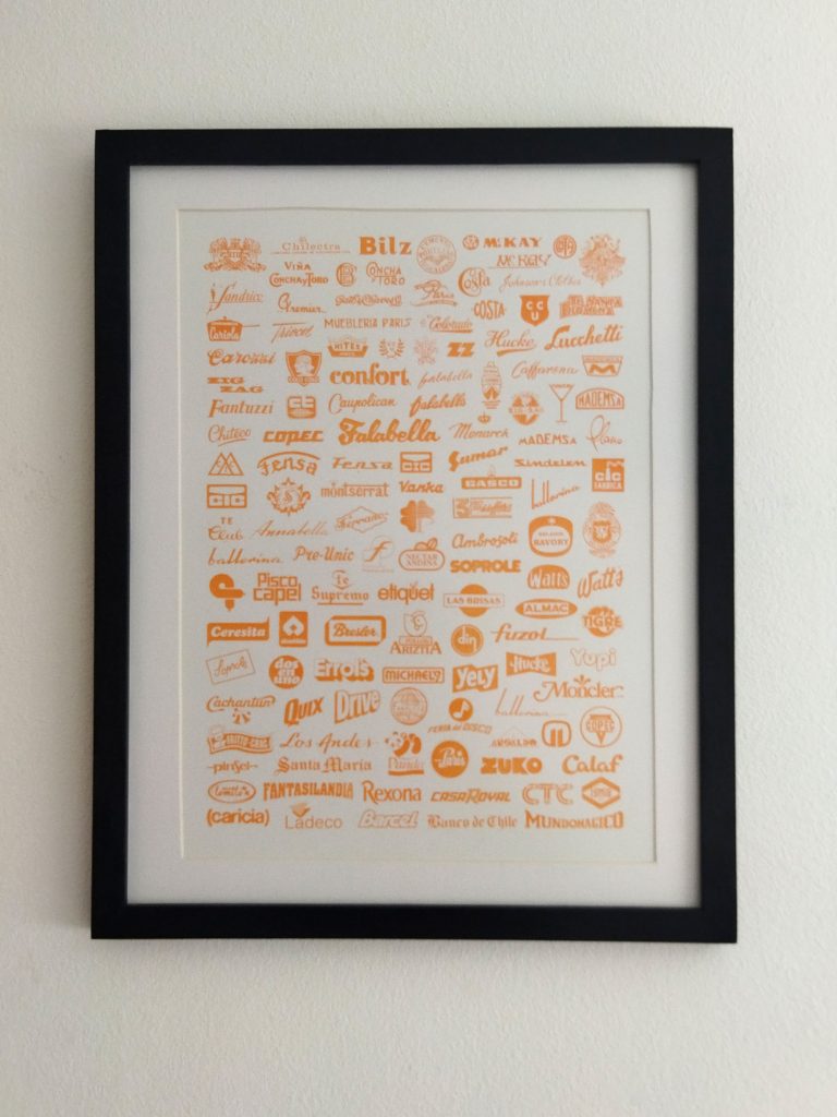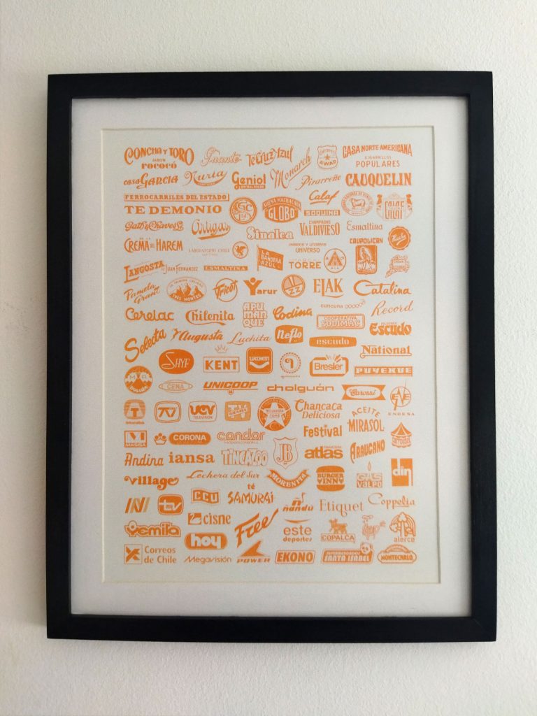 Hace algunos años hojeando en el libro “Chile marca registrada” de Pedro Álvarez Caselli se mostraba un afiche de los hermanos Vicente y Antonio Larrea en el cual se apreciaba un compendio de su trabajo en el diseño de logotipos. Me gustó la idea de diagramarlos de esa manera y hacerlos en un afiche así que lo tome como mi referente principal.